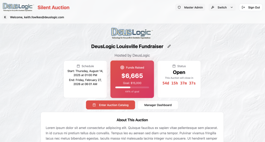 Turn your next fundraiser into an unforgettable community event with a silent auction platform designed to be as fun as it is functional. Our easy-to-use, affordable SaaS solution removes the technical barriers to giving, allowing your supporters to engage in friendly competition that drives up bids and excitement effortlessly. By streamlining the auction experience—from item setup to final checkout—we empower your organization to maximize revenue and focus on what matters most: expanding your outreach and fueling the vital work that transforms your community.